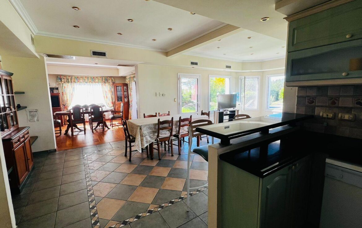 Sobre un lote de 1440 mts2 de terreno con 725 mts2 cubierto repartidos en amplio living , cocina comedor, 2 dormitorios, dos baños, lavadero, quincho parrilla y pileta con amplio parque. En planta alta tres dormitorios con baño en suite, terraza.