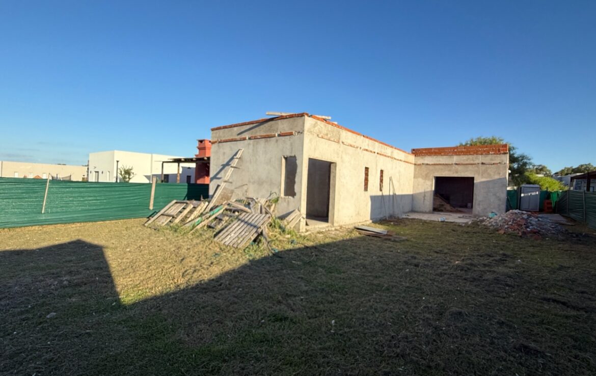 Casa A TERMINAR en venta en el exclusivo barrio privado santa Elena de Pilar del Este, ubicada en Zelaya. Esta propiedad en construcción ofrece una superficie total de 150 m2, de los cuales 120 m2 son cubiertos y 30 m2 descubiertos, ideal para disfrutar de un ambiente confortable y al aire libre. Con una orientación norte, el inmueble se beneficia de una excelente iluminación natural, creando un espacio cálido y acogedor.