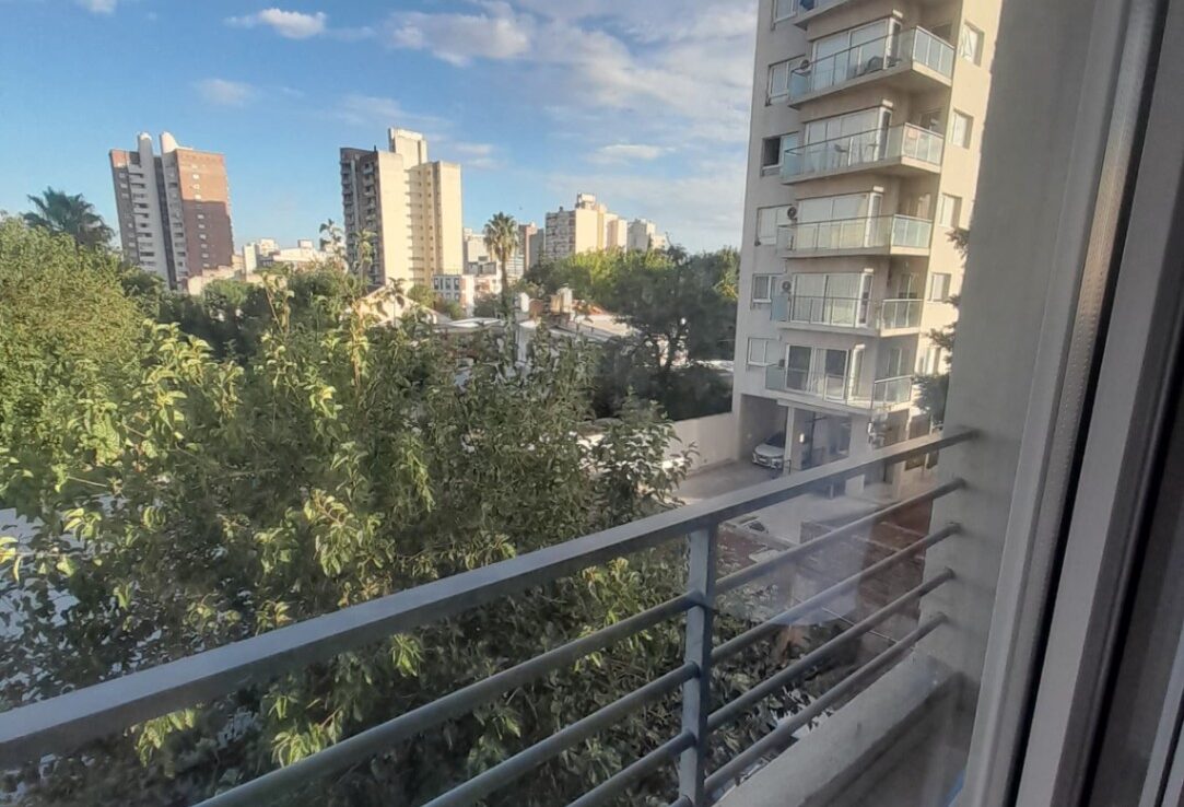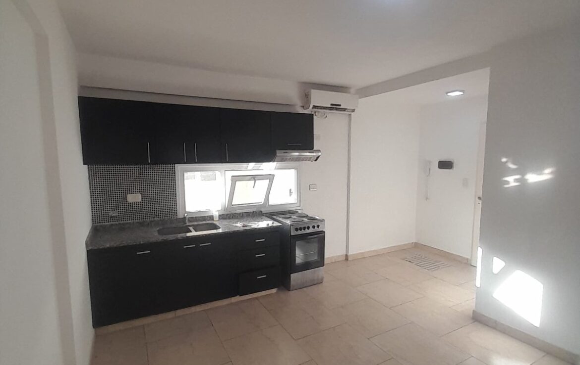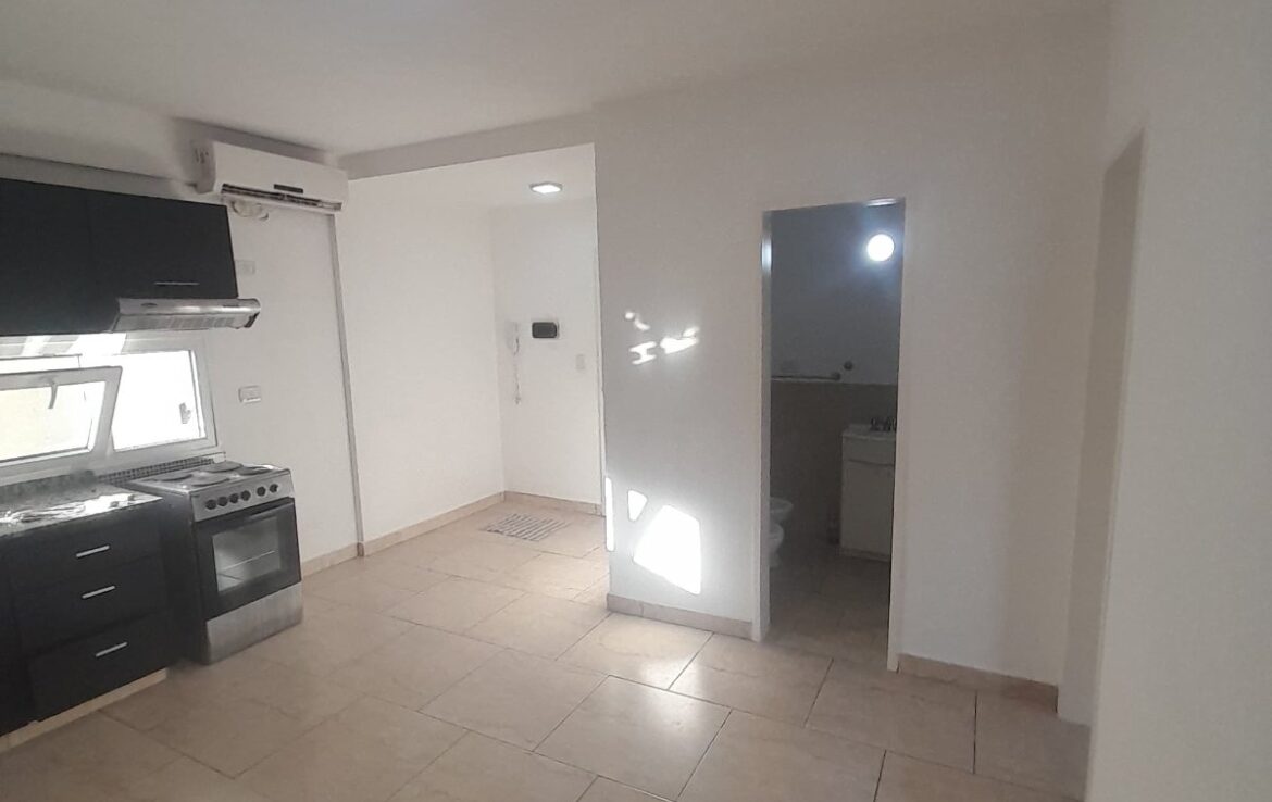 Departamento dos ambientes compuesto por living comedor con balcón, cocina completa integrada, baño completo, dormitorio con placard empotrado.