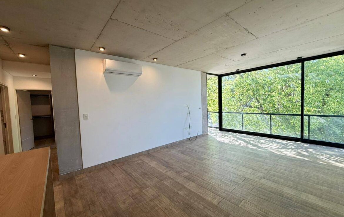 El departamento cuenta con 3 ambientes bien distribuidos, que incluyen 2 dormitorios con placard y 1 baño completo, ideal para maximizar la comodidad y funcionalidad. Su disposición al frente permite la entrada de abundante luz natural, creando un ambiente cálido y acogedor. El mismo cuenta con detalles de hormigon a la vista en cielorraso, el mismo se encuentra construido con materiales de primera calidad. Posee cochera cubierta, con la ubicación estratégica de Parque Leloir, cerca de servicios, comercios y áreas recreativas.
